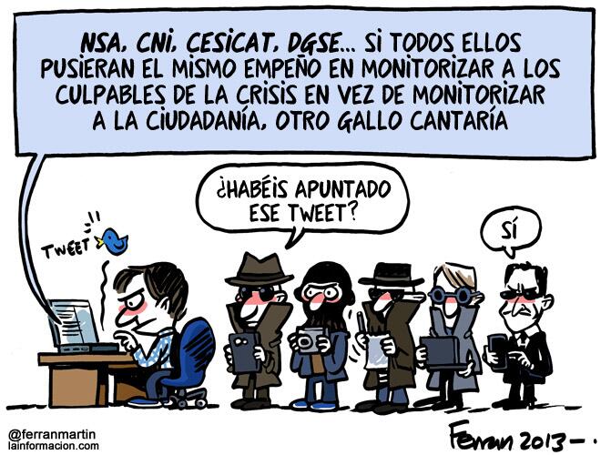ESTOY TAN INDIGNADA CON EL ESPIONAJE MASIVO A L@ S CIUDADAN@ S QUE CASI HE TIRADO LA TOALLA, PERO VA A SER QUE NO LES VOY A DAR ESE GUSTO A QUIENES NOS SAQUEAN Y NO RESPETAN EL DERECHO A LA LIBERTAD DE EXPRESIÒN.