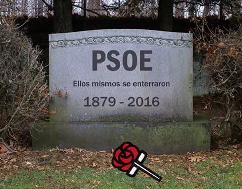 Lamentablemente la gestora golpista que ha echado a Sánchez del PSOE y prefiere traicionar a sus militante y votantes para que Rajoy vuelva a ser presidente ha ASESINADO al PSOE.
